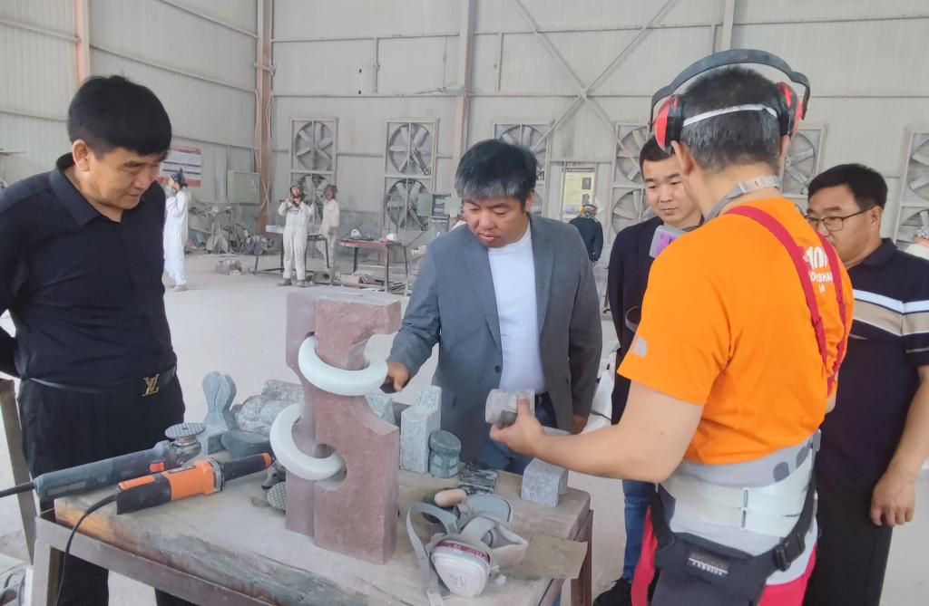 张建敏校长一行在河北鑫特雕塑集团董事长吴学儒的陪同下参观了企业园区,并详细介绍了企业发展现况及取得的荣誉。
