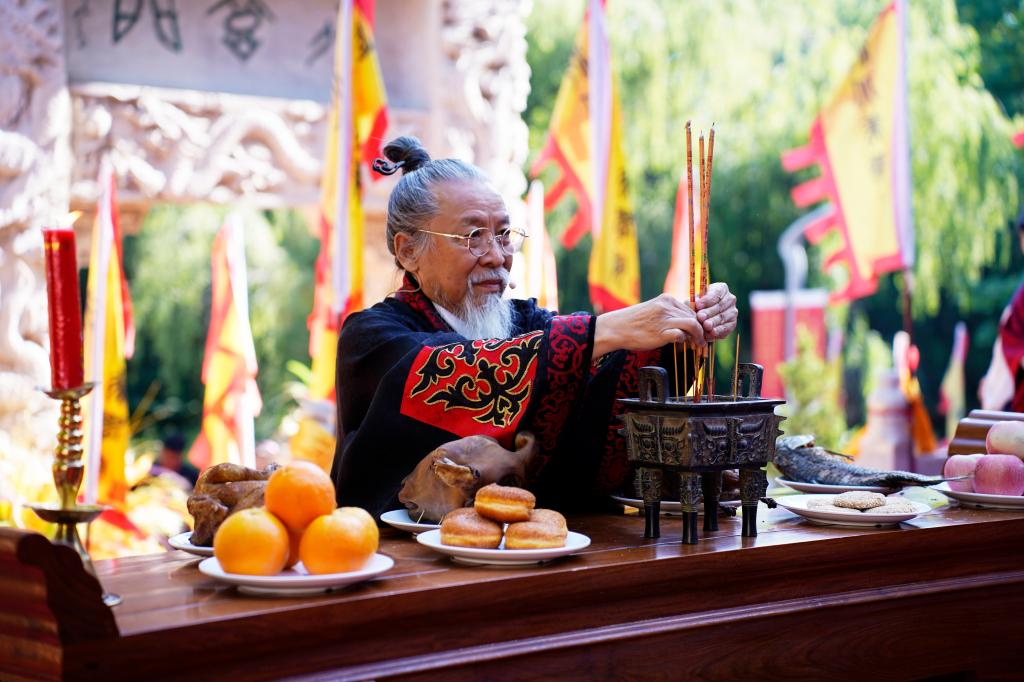 校长甄忠义敬香行礼、敬告圣人。裴红彬、张建敏、张子言、麻立峰依次行亚献礼。