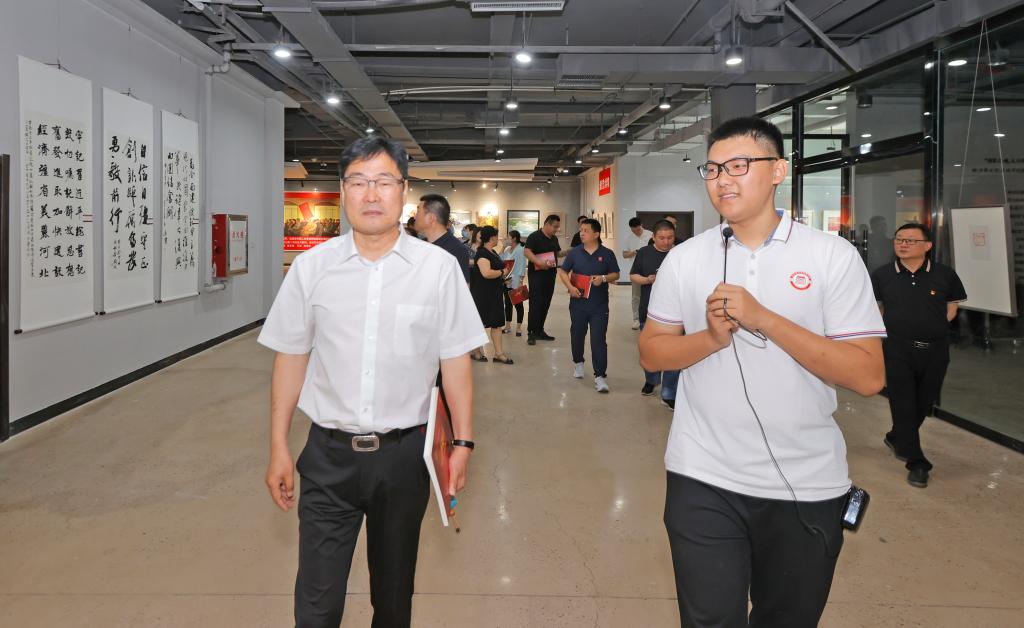 为深入学习贯彻党的二十大精神,以高质量党建引领学校全面发展,6月14日上午,礼赞二十大、永远跟党走、奋进新时代——beat365手机版官网“党的二十大文艺礼赞”作品展在beat365南校区红色文化长廊顺利开幕。校领导裴红彬、张子言、麻立峰,党委委员周哲、齐志辉、周文静、孙小慧出席开幕式。开幕式由党委宣传统战部副部长纪二娟主持。