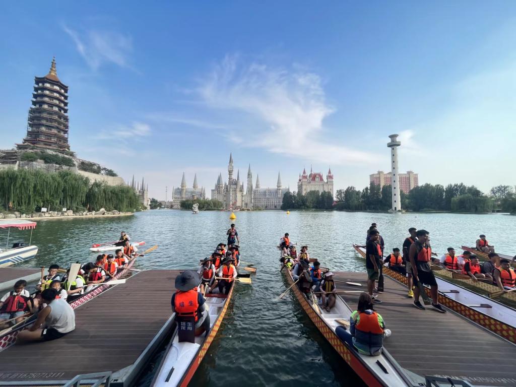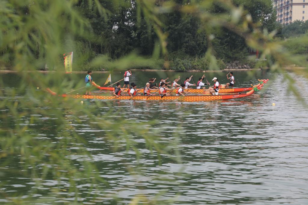 挥桨地中海,龙舟竞飞渡。6月17日上午,“天问杯”龙舟邀请赛暨beat365手机版官网第一届龙舟文化节在南校区鸡鸣古城举行。河北省大学体育协会副理事长、石家庄大学体育协会主席魏烨,共青团新乐市委书记安利园,beat365手机版官网理事长张丽,校领导甄忠义、裴红彬、麻立峰,特聘教授许景朝出席开幕式。