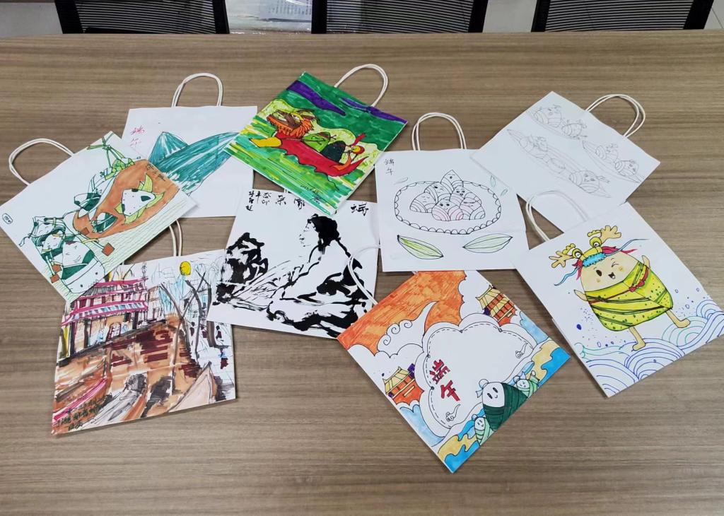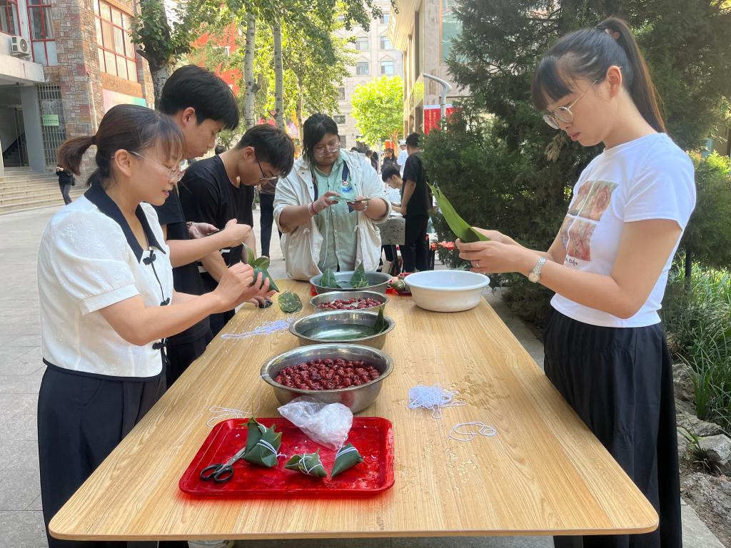 本次活动包括缝制香囊、包粽子、刻陶印、绘图案、推送书单等内容。广大师生热情参与,亲身体验绣香囊、包粽子等项目,用一幅幅鲜明、生动的作品表达了对端午节日的祝福。师生在体验动手制作快乐的同时,也感受了浓浓的节日氛围。