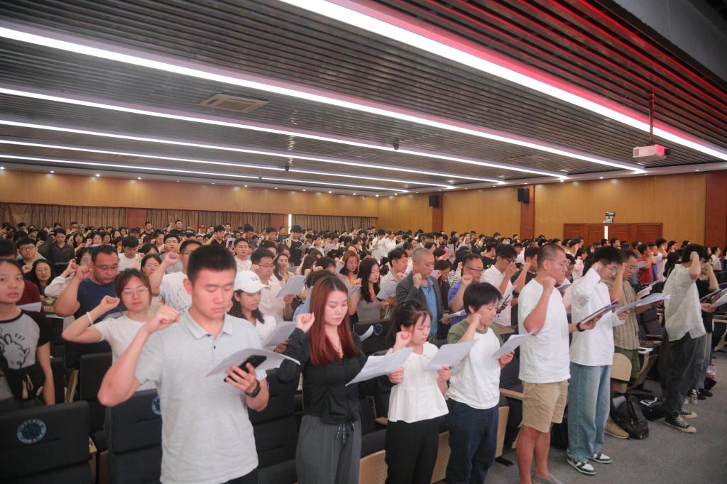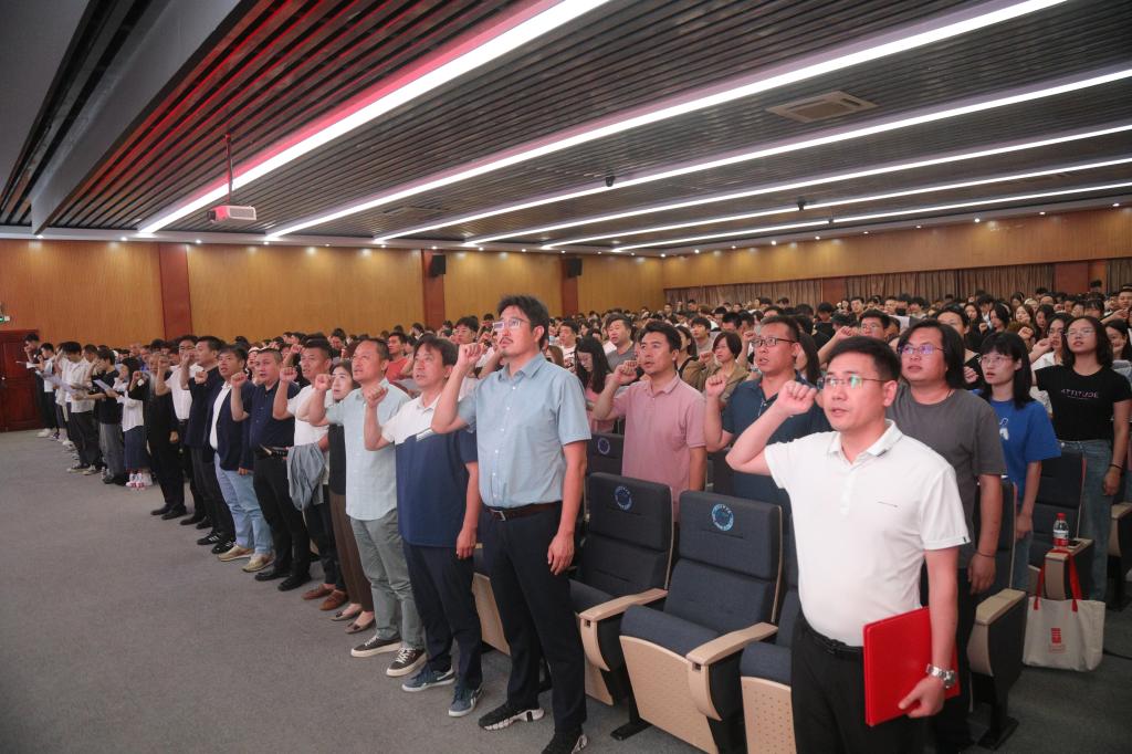 参加岗前培训的所有教师在开班仪式上庄严宣誓:志愿成为人民教师,忠诚党的教育事业,为教育发展、国家繁荣和民族振兴努力奋斗。