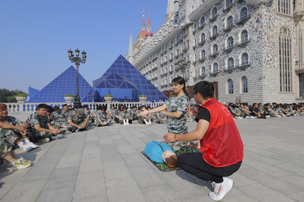 石家庄市卫生救护培训中心老师采取“理论+实操”的教学模式为同学们讲授了心肺复苏和海姆立克急救法的应急救护知识,帮助学生准确掌握“心脏按压”“人工呼吸”“海姆立克急救法“等技能要点。