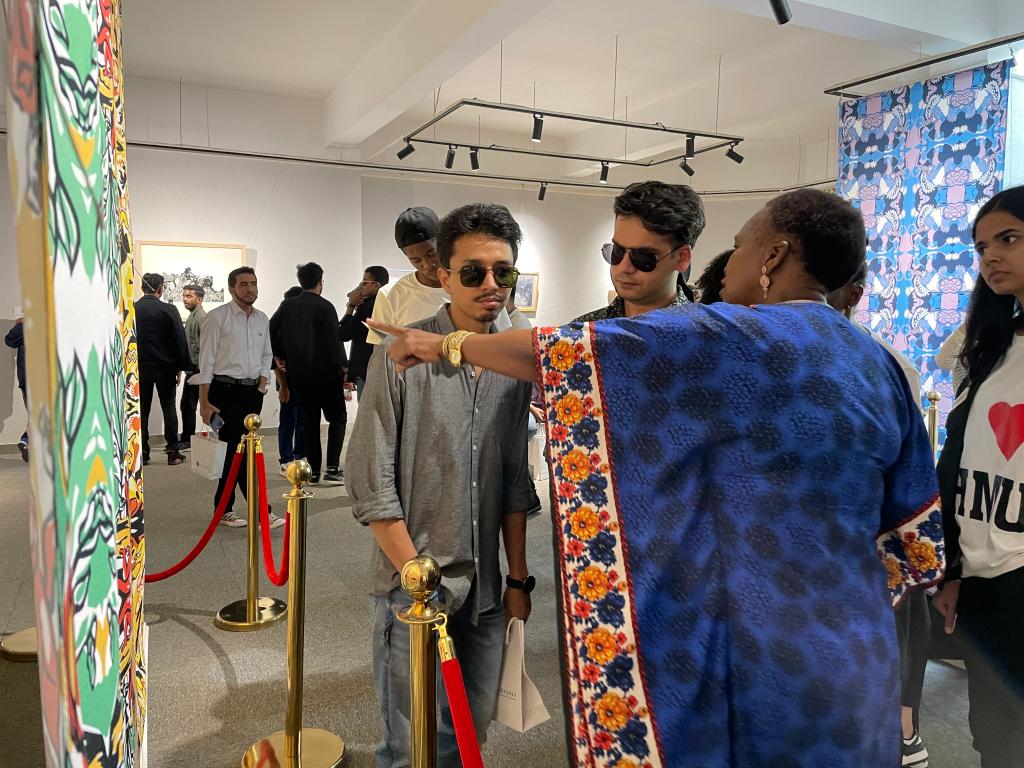 在参观以“就是这样”为主题的南非大学Nombe Mpako教授个展过程中,Nombe教授与留学生们亲切讨论,讲述了她的创作理念和灵感来源。