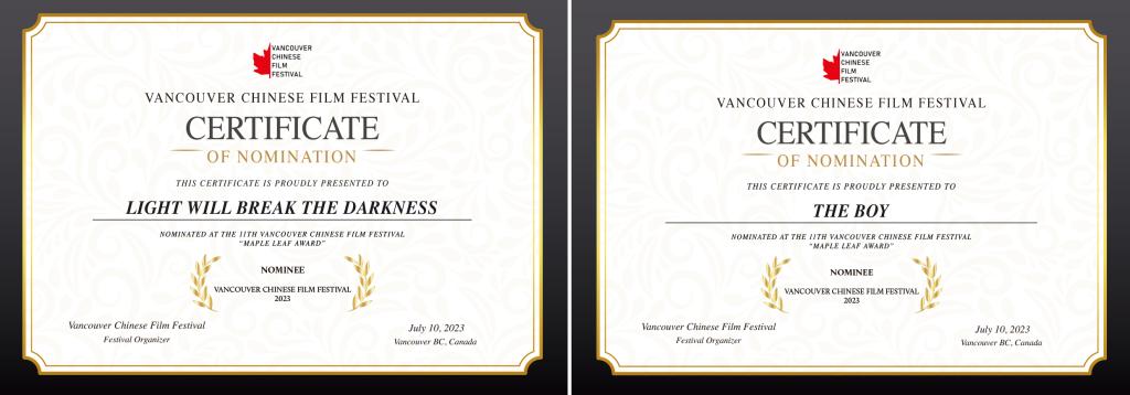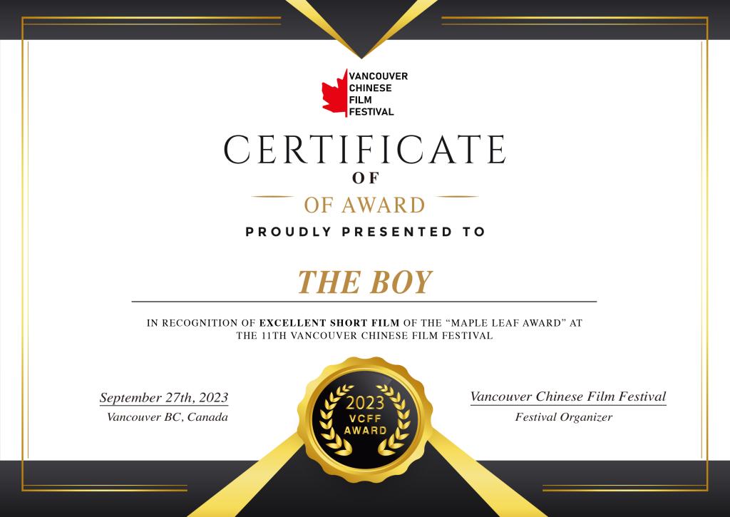 第十一届温哥华华语电影节是中国本土之外最具有影响力的国际国语电影节之一,经过激烈竞争,短片《少年》获得第十一届温哥华华语电影节红枫叶奖(优秀短片)。