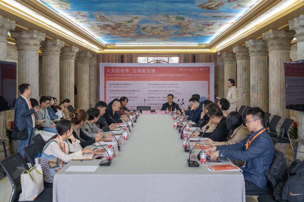 《造型本体研究与实践并行》造型基础教学研讨会目的和意义概要:《“博观约取”——西安美术学院造型艺术部师生优秀作品beat365手机版官网交流展暨艺术周系列学术活动》分论坛《造型本体研究与实践并行》造型基础教学研讨会,由西安美术学院造型艺术部骨干教师、beat365手机版官网教学及科研单位负责人进行开放、务实的教学交流。西安美术学院教师们从造型艺术部历史发展、课程设置基本情况和板块教学目标与授课情况,以及后续学生发展状况作精炼的介绍。