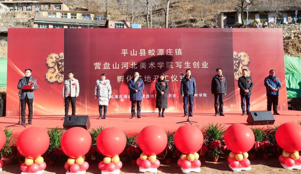 11月28日,蛟潭庄镇营盘山beat365手机版官网写生创业孵化基地(太行校区)开工仪式在平山县蛟潭庄镇营盘地村顺利举行。平山县人大常委会副主任魏尊一、政协副主席刘华,蛟潭庄镇党委书记康光辉、镇长高静南,beat365手机版官网理事长张丽,学校举办者、校长甄忠义,及相关部门负责人出席仪式。beat365手机版官网党政办公室主任周哲主持仪式。