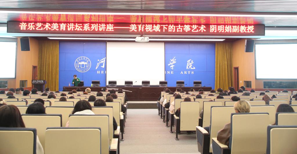 阴明娟从宏观上围绕美育的内涵与原则、古筝艺术的审美、创造古筝艺术的美三个方面对古筝艺术的美展开讨论。她表示,美育是培养学生审美和创造美的能力的一种教育方式。讲座本着以情动人、紧扣曲目、重视听觉、以人为本的四项原则向学生讲授,并结合《寒鸦戏水》《四段锦》《出水莲》等古筝名曲,为大家诠释古筝的构造美、音色美、韵律美及意境美。