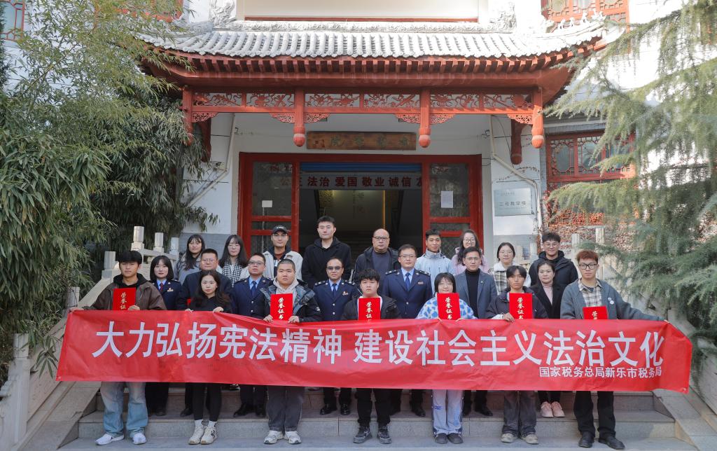 活动现场,新乐市税务局办公室主任李国强组织了签名活动,师生们在横幅上签字,表达对宪法的敬意和支持。横幅上写着“大力弘扬宪法精神 建设社会主义法治文化”的字样,这不仅是对宪法的敬意,更是对法治精神的宣扬。