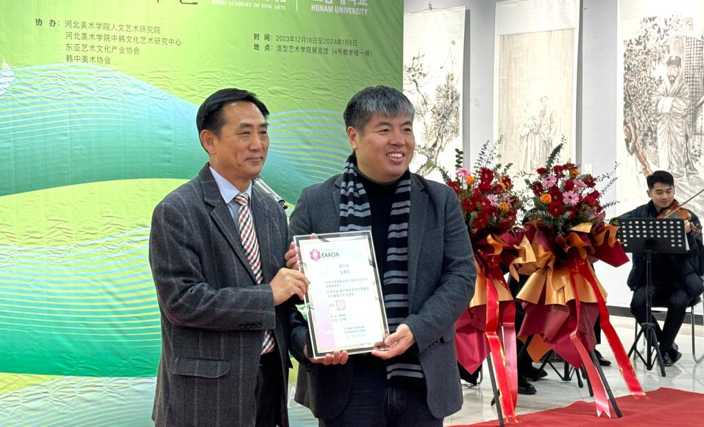 权锡焕会长向张建敏副校长颁发东亚艺术文化产业协会副会长委任状