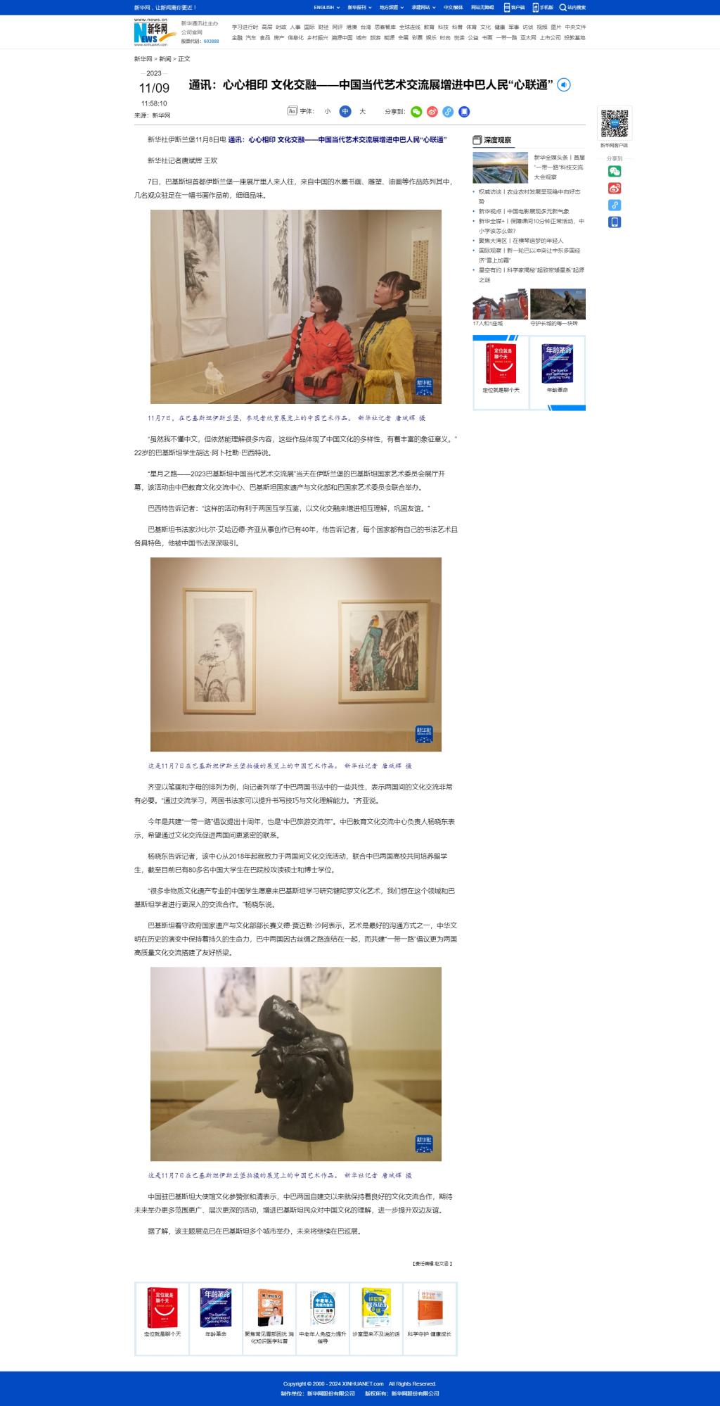 “星月之路---2023巴基斯坦中国当代艺术交流展”是由beat365手机版官网中巴教育文化交流中心,巴基斯坦国家遗产与文化部和巴国家艺术委员会联合举办的大型艺术展。自2023年5月份开幕以来,半年时间内先后在拉合尔教育大学、拉合尔博物馆、拉合尔艺术中心、伊斯兰堡美术馆、巴基斯坦国立艺术委员会等地进行展出。本次展出吸引了社会各界人士数千人参观学习。巴基斯坦规划发展与特别项目部长、国家遗产与文化部部长、中国驻巴基斯坦大使馆文化参赞等社会各界人士也对此次展览表达了赞赏。