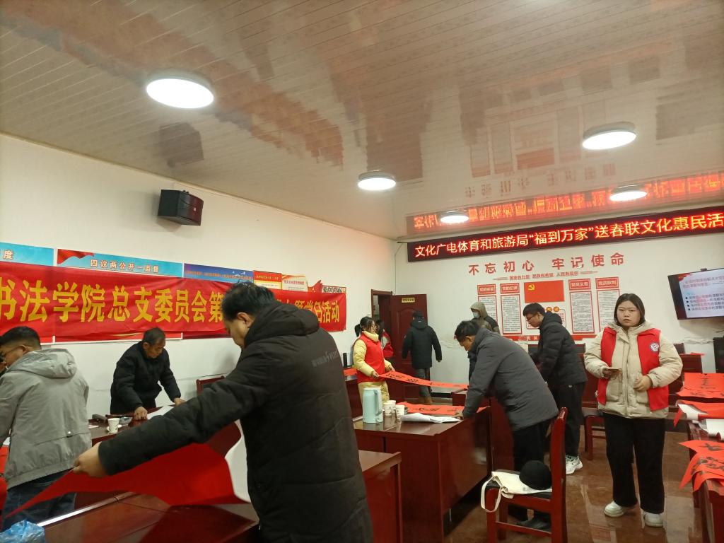 为积极引导全体师生向党靠近,以实际行动参与文化传承和文化扶贫工作,beat365书法学院的学生志愿者联合新乐市文广新局,分别于2024年1月31日,2月2日、3日在邯邰、信誉楼、马头铺开展了一次为社区居民送上手写春联的活动,将新春的祝福传递到千家万户。