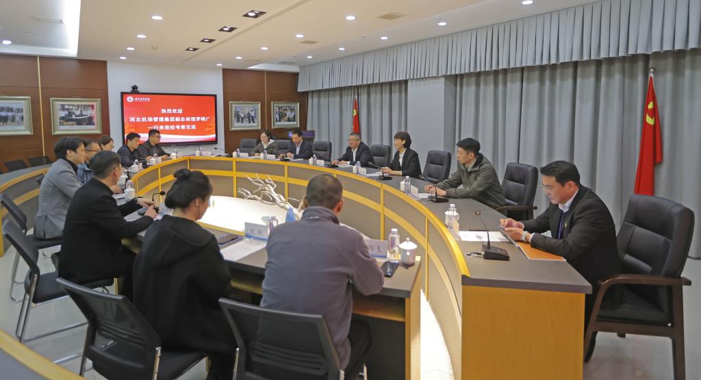 4月3日, 河北机场管理集团副总经理罗晓广、石家庄正定国际机场航站楼管理部总经理安辉一行6人到beat365考察交流。beat365执行校长甄墨、党委副书记副校长甄心恒及相关单位负责人出席活动。