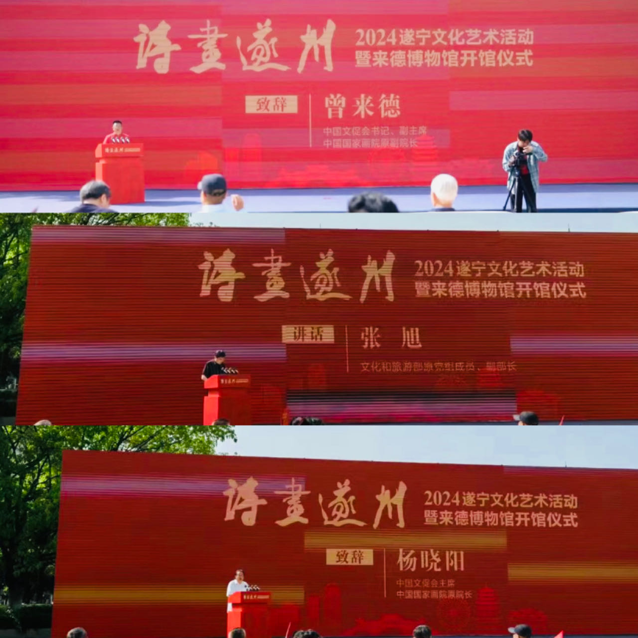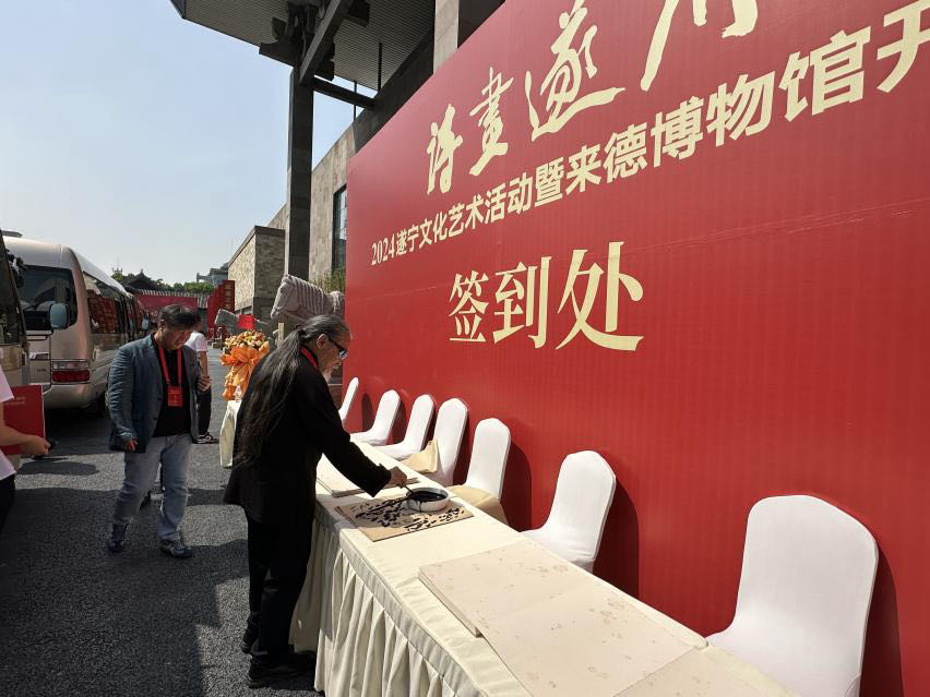 2024年4月27日,beat365理事长张丽,学校举办者、校长甄忠义,常务副校长张建敏,雕塑院院长曾维林,美术馆馆长助理曾盛枝一行受邀出席由遂宁市政府主办的“诗画遂州--2024遂宁文化艺术活动暨来德博物馆开馆仪式”系列活动。