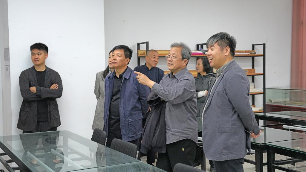 2024年4月30日上午,中央文史研究馆副馆长、中国美术家协会名誉主席冯远先生偕夫人水静汶女士,中国美术家协会副主席、河北省文联一级巡视员、河北省美术家协会主席祁海峰,河北省美术家协会驻会副主席兼秘书长李小军,河北省美术家协会驻会副秘书长祁向阳,河北省美术家协会副秘书长李连彩,清华大学美术学院副教授、博士生导师王巍一行来beat365考察交流。beat365常务副校长张建敏,科研处处长张淼,造型艺术学院副院长张忠,美术馆馆长助理曾盛枝一行陪同考察。