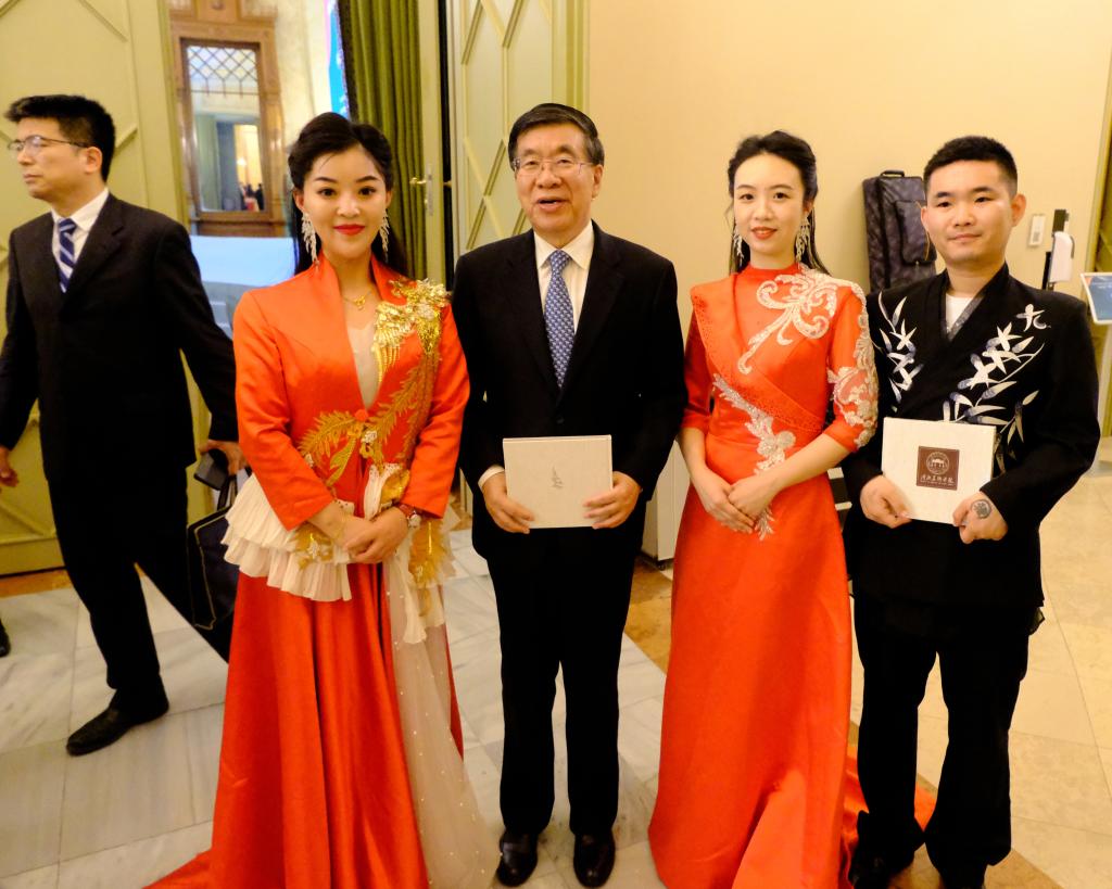 艺术团的表演不仅是一场视听盛宴,更是两国文化交流的桥梁。活动结束后,傅华社长、纳吉·马顿部长、刘洪才副会长与艺术团合影留念,纪念这一重要时刻。