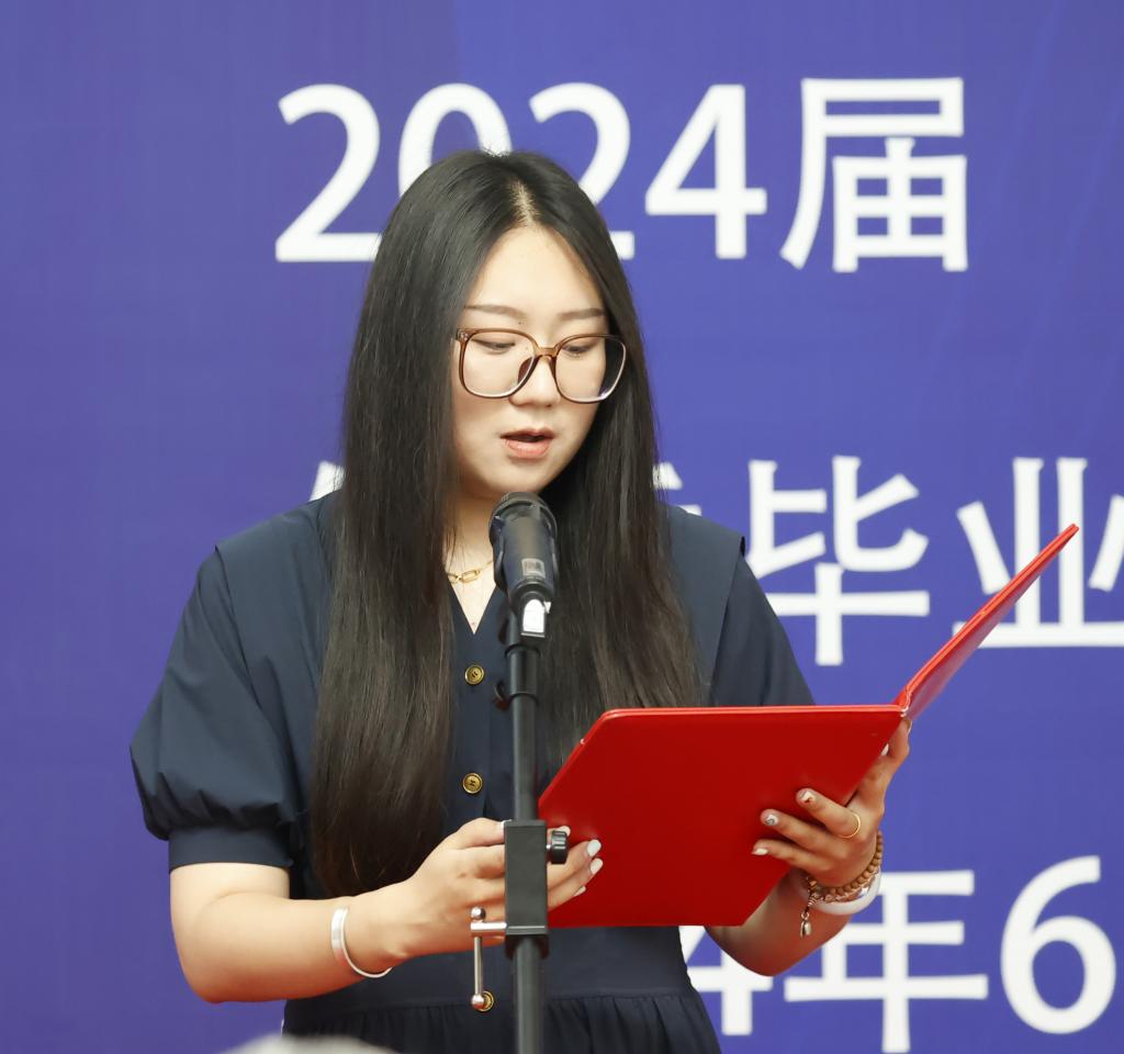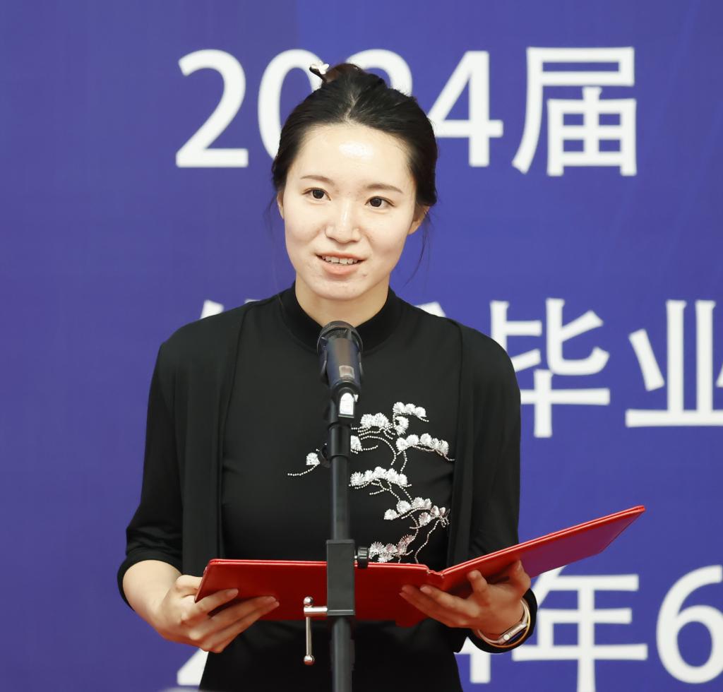 优秀毕业生代表王钰欢回顾了自己难忘的大学时光及专业课的学习心得。她表示,未来将保持对艺术的热爱和追求,不断学习,努力在艺术的道路上取得更加辉煌的成就。