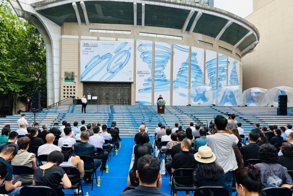 西安美术学院此次以“无界西美”为主题、“无界之风”为主视觉的2024届本科毕业作品展,坚守艺术为人民服务,艺术为社会服务的创作导向,秉持“为时代画像、为时代立传、为时代明德”的创作态度,以艺术的去边界化、去中心化,探索自由多元的生活方式、人生体验;以全球化视野、跨文化交流为基础,构筑艺术场域的跨界性、融通性、互补性;以古都西安为起点,演绎中西无界、思想无界、方法无界、类别无界、创新无界。