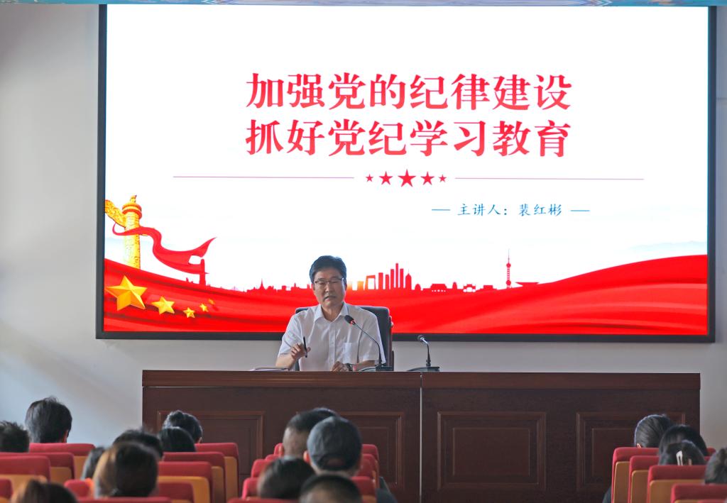 为加强党风廉政建设,提升党员的纪律意识,党委书记裴红彬在党校开展了一场内涵丰富的纪律党课,基层党组织书记、专职组织员、纪检委员等100余名党员到场聆听。
