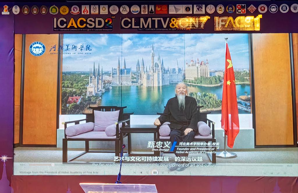 甄忠义通过线上参会。他指出,在全球化背景下,文化多样性和文化交流愈发重要,艺术持续发展意义重大。中国beat365手机版官网,一直致力于文化的可持续发展,秉持开放创新合作精神,已与众多单位合作,积极推动产学研融合。他鼓励大家要积极参与国际展演,不断促进文化交融,并希望与各界携手,书写艺术文化发展新篇章,为世界文化多样性贡献力量。