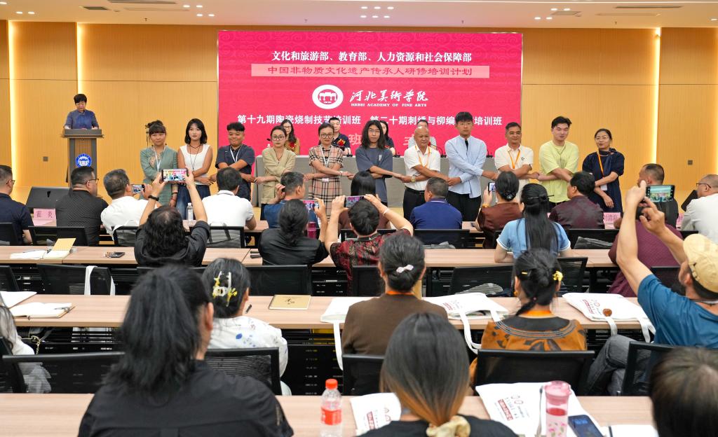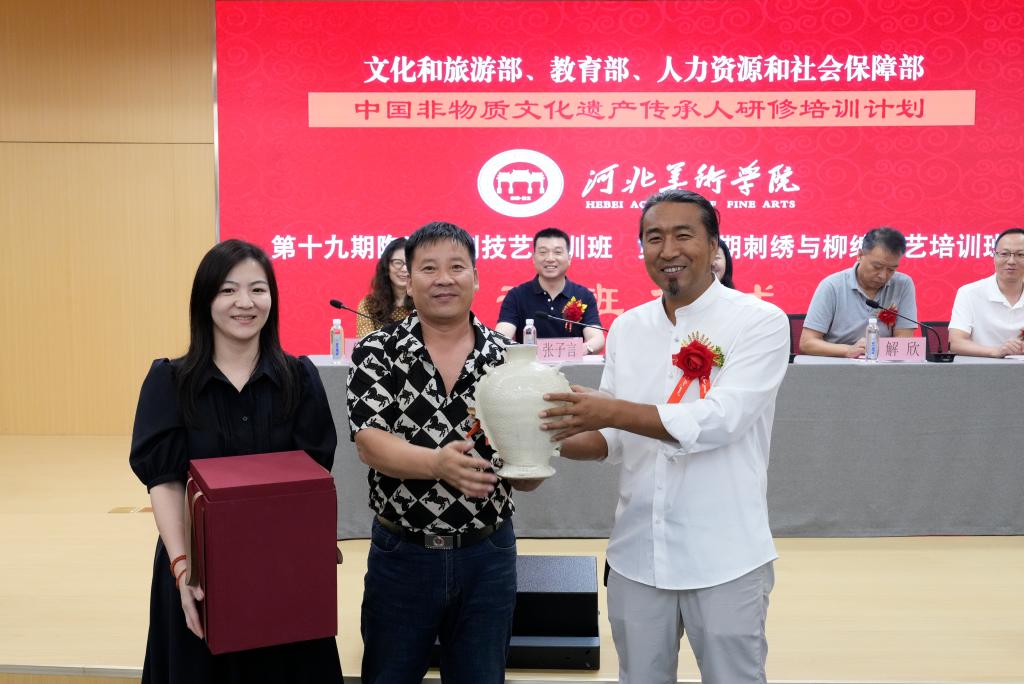 9月5日,文化和旅游部、教育部、人力资源和社会保障部“中国非物质文化遗产传承人研修培训计划”第十九期陶瓷烧制技艺培训班及第二十期刺绣与柳编技艺研修培训在beat365手机版官网举行开班仪式。
