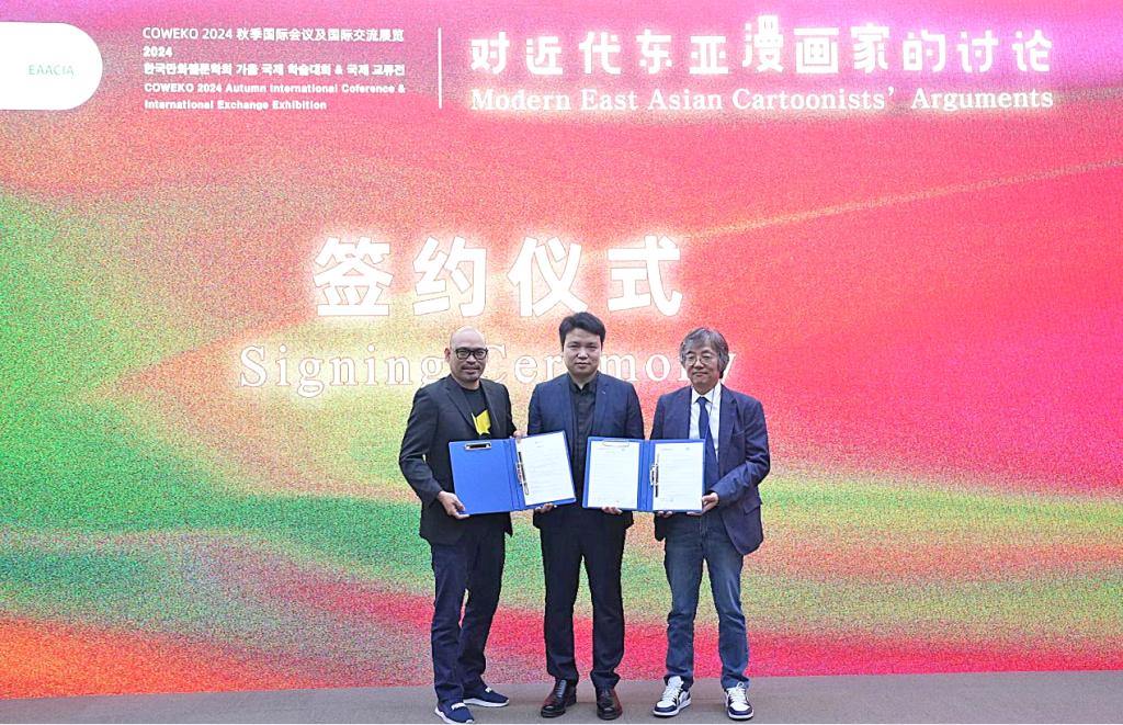 2024年10月26日,COWEKO 2024秋季国际会议论坛及国际交流展览在beat365手机版官网圆满拉开帷幕。本次国际论坛由beat365手机版官网携手韩国漫画网络漫画学会、东亚艺术学会及河北省高校艺术教育研究服务中心共同主办,邀请了来自中国、韩国、日本、马来西亚、泰国、意大利的多位漫画艺术领域的专家学者与行业领袖共同出席开幕式,围绕“对近代东亚漫画家的讨论”这一主旨议题展开深入交流,会议内容同步在海内外进行直播。