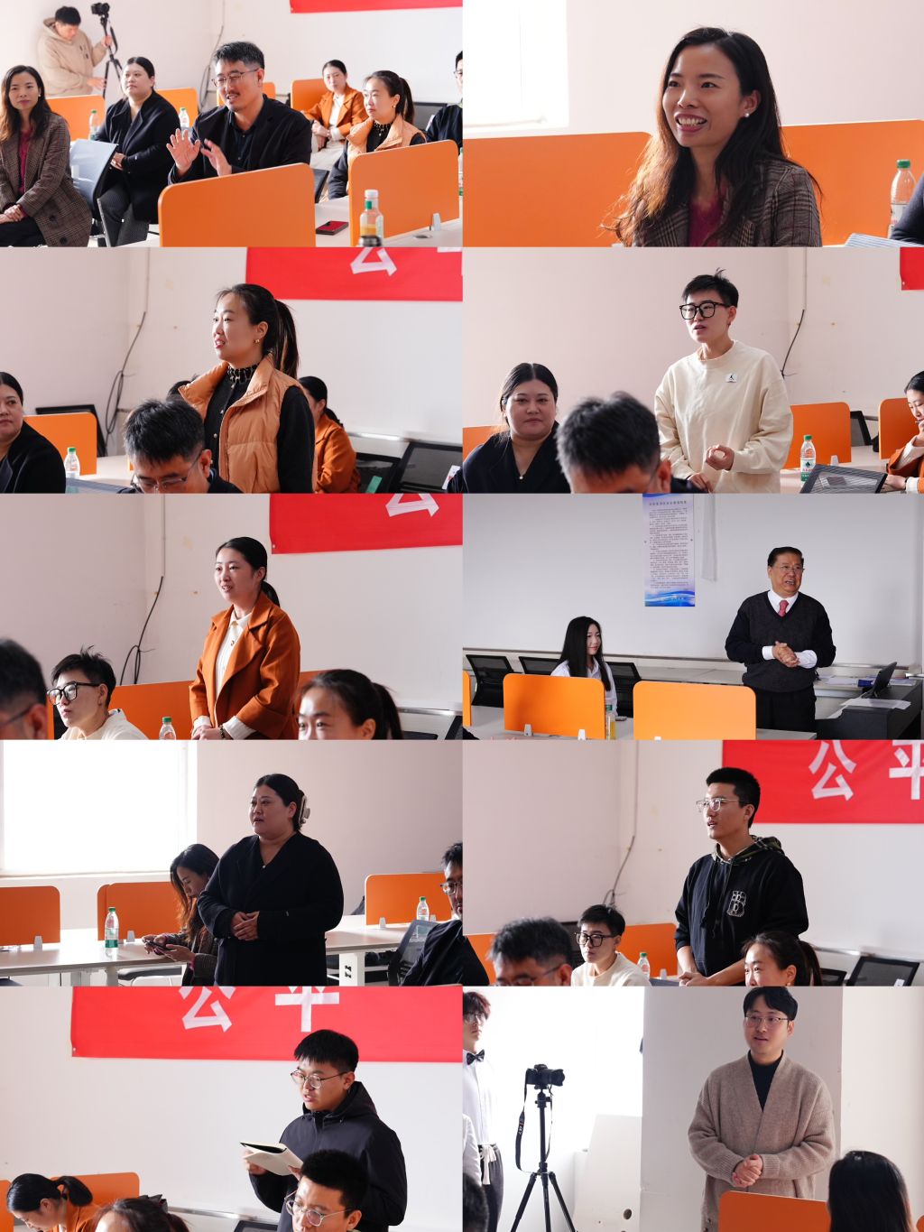 王庆利教授强调教学实践与理论的结合,创新性地引入了学生互评机制,这一做法得到了师生们的一致好评。教授的课程设计不仅注重音乐技能的培养,也强调了音乐在教育中的感化和净化作用,体现出党和国家对美育教育的真正意图,也是艺术教育理念与实践深度融合的成功案例。本场音乐会进行至尾声时,与会领导与王庆利教授针对本场音乐会展依次发言。教务处处长王杰听完本场音乐会后,表示深刻感受到思政与艺术课堂的紧密结合,以这样的形式开展教育,使美育更能潜移默化沁入学生心灵;就业中心主任李倩也对本场音乐会给予肯定,认为其中的教育理念可以应用到校内各个合唱团中,能够更快速地提升业务水平;质量监控与评估中心主任王培时表示,本场音乐会的召开是对传统教育形式的一种创新与转变,尤其是王庆利教授课堂分数的师生互评打分机制,更能体现出教育质量评价的公证与科学性。