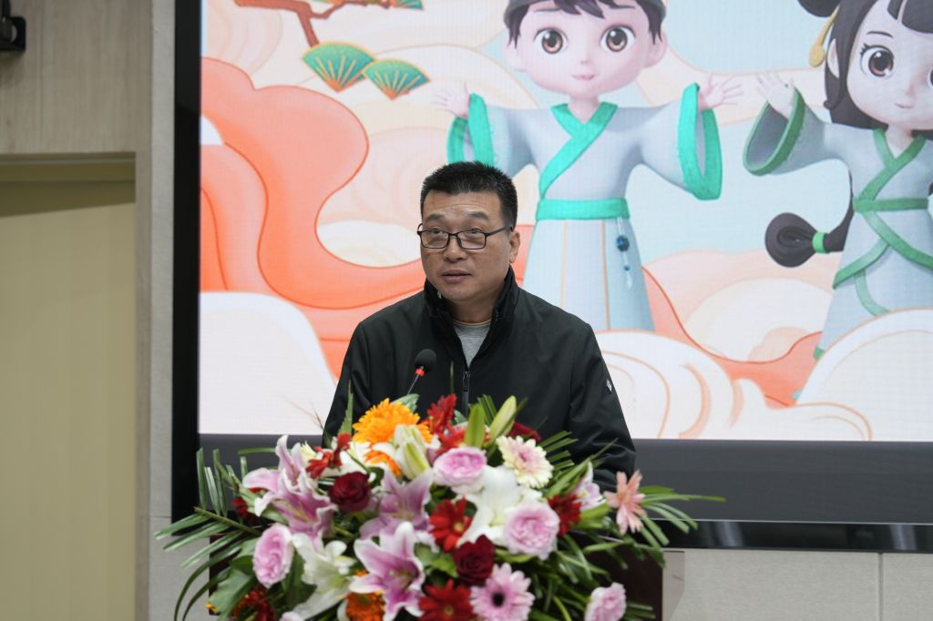 张子言致辞。他指出,这部作品不仅彰显了艺术与文化的深厚魅力,更体现了数智技术赋能教学的潜力。他强调,在当今快速发展的数字时代,如何更好地将传统文化与现代技术相结合,是每一位教育工作者都需要深入思考的问题,而《美丽的传承》正是这一思考的有益尝试和成功实践。学校将继续支持并鼓励师生们在教学实践中的创新探索,为他们提供更多的资源和平台。