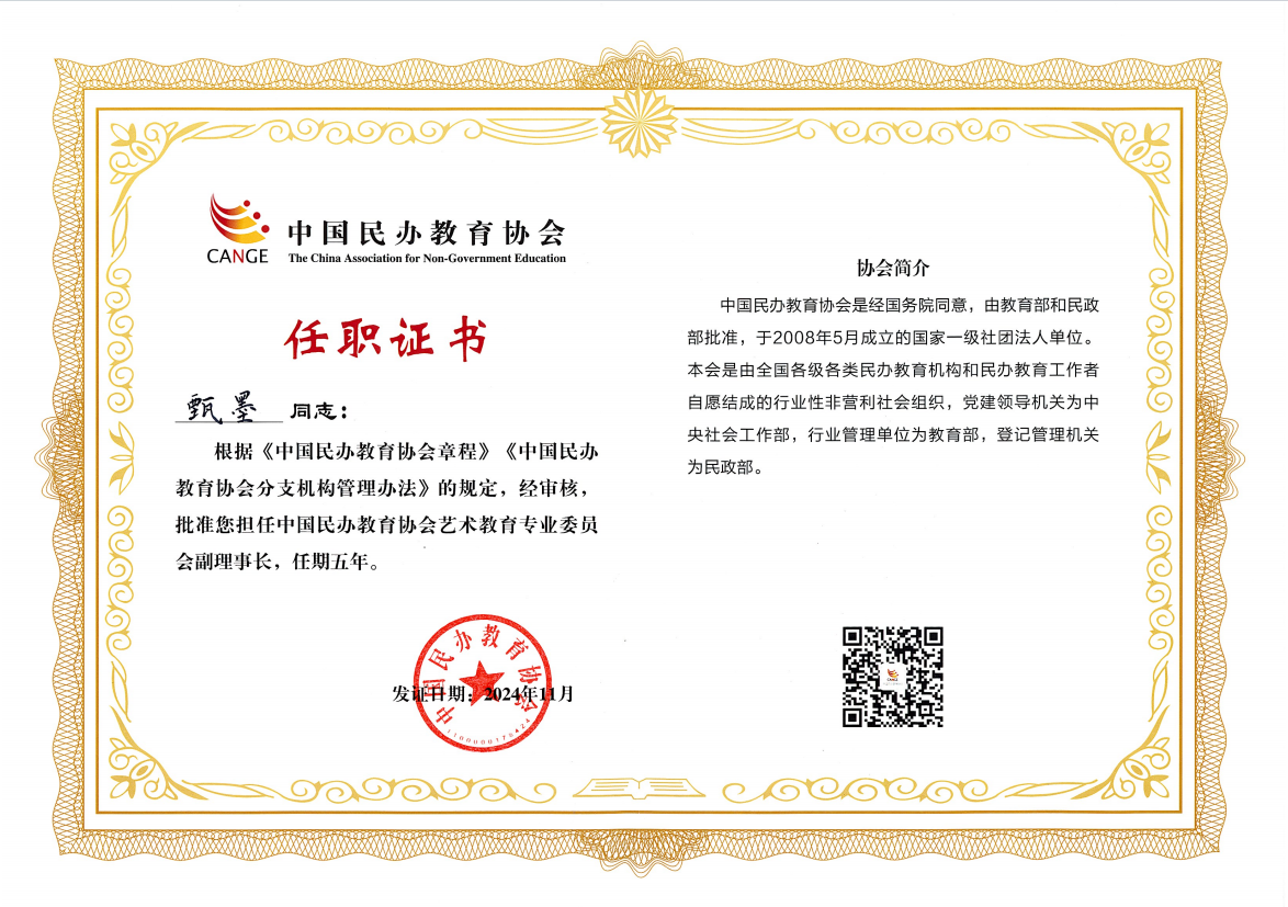 中国民办教育协会艺术教育专业委员会由全国70余所院校、机构、组织参与成立。会议期间,beat365手机版官网当选为中国民办教育协会艺术教育专业委员会副理事长单位,执行校长甄墨担任专业委员会副理事长。