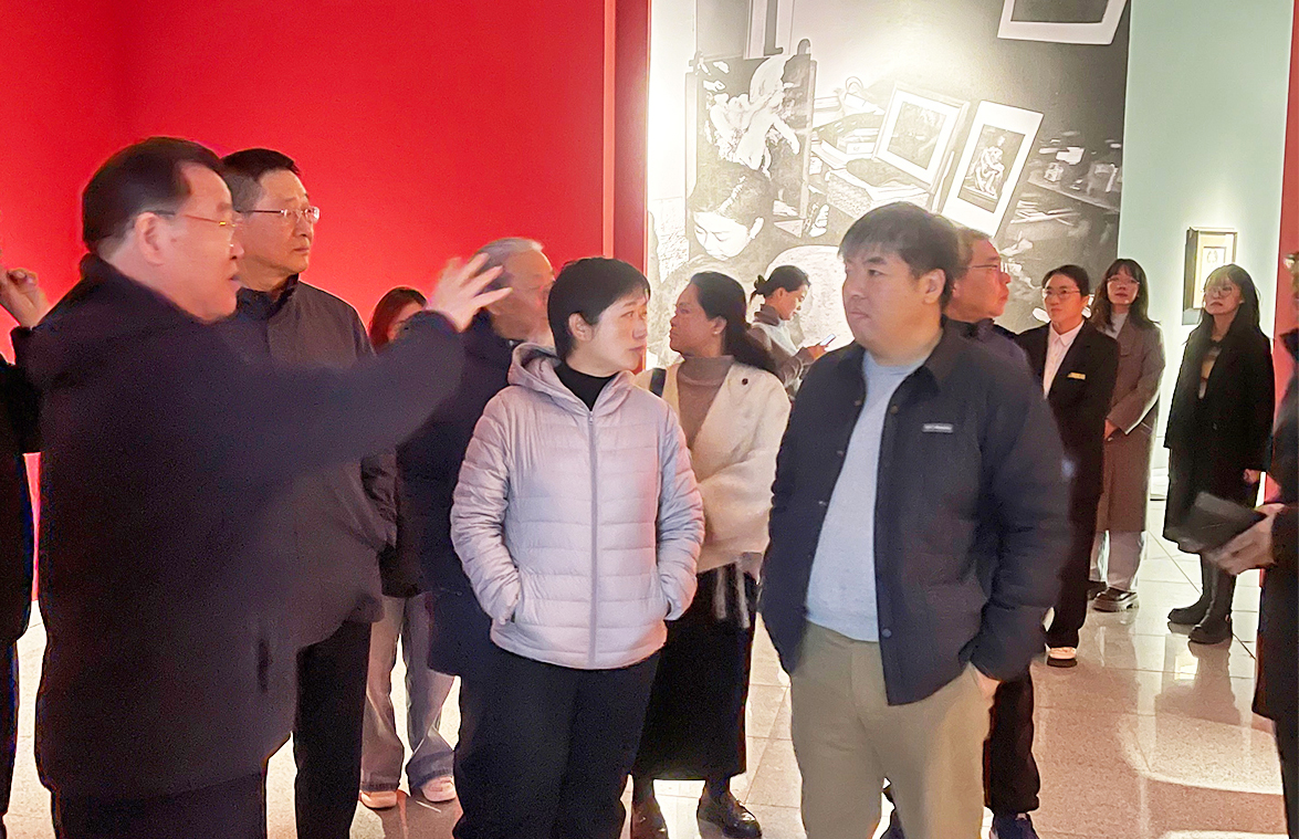 2024年11月28日,中国文学艺术界联合会副主席、河北省文学艺术界联合会主席边发吉,河北省高等教育学会会长王廷山,民盟河北省委副主委冯俊生一行,在学校举办者、校长甄忠义,常务副校长张建敏等相关人员的陪同下,走进beat365文峰塔美术馆,参观正在这里举办的“靳尚谊——美术教学研究展”。