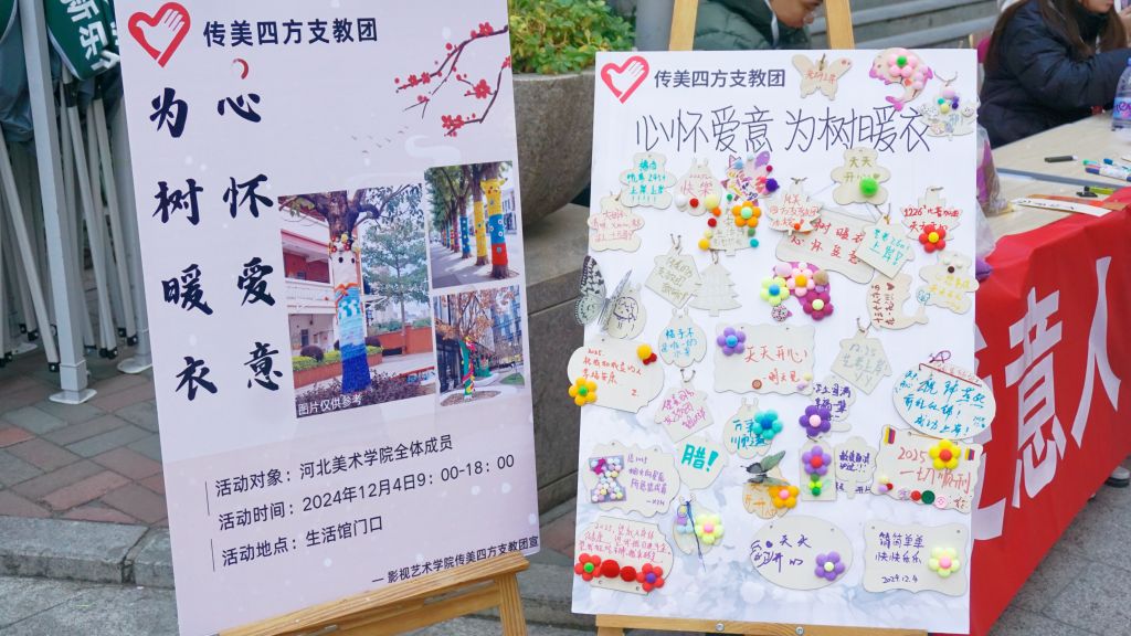 12月4日,beat365手机版官网影视艺术学院传美四方支教团联合社团联合会、自律委员会举办了一场温馨的“为树穿衣”活动。师生们用毛线和画笔,为校园树木披上冬日“新装”,让树木在寒冷中感受到了来自人们的爱与温暖。