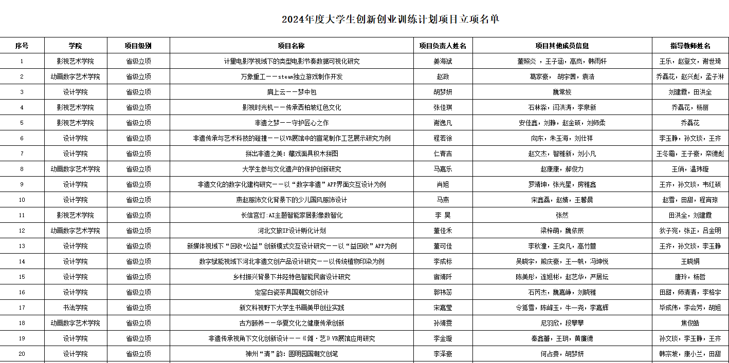 近日,河北省教育厅公布了“2024年度国家级和省级大学生创新创业训练计划项目立项名单和结题验收结果”。经学校遴选、验收、申报和省教育厅审核,beat3652023年度大学生创新创业训练计划15个省级立项项目均顺利通过结题验收,2024年度大学生创新创业训练计划项目省级立项20项。