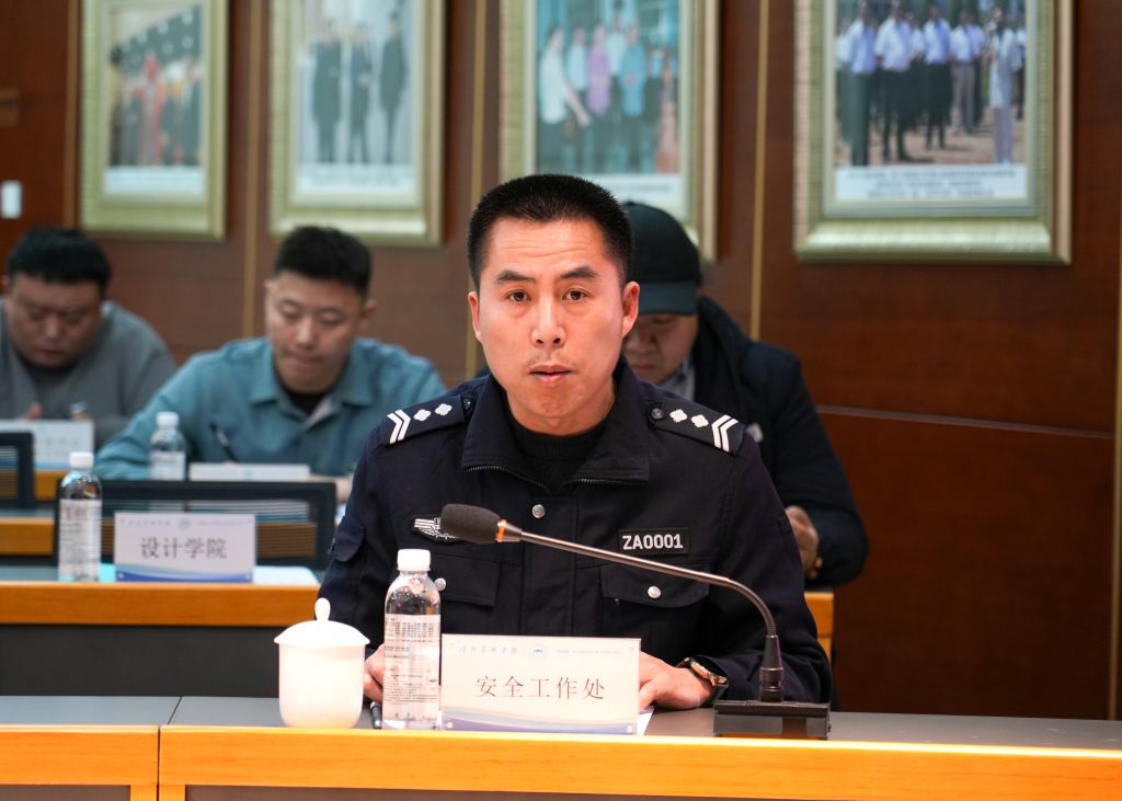 学校学生工作处、造型艺术学院分别对2024年安全工作进行全面总结。学生工作处副处长姚春龙深刻剖析了存在的问题和不足,并对2025年学生心理健康、公寓管理、学生就业、意识形态等方面面临的主要风险进行了研判,并制定了防范化解应对措施。