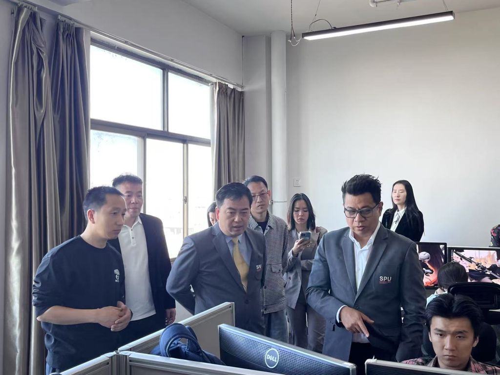 幸琳凯一行实地考察了beat365动画数字艺术学院。在专业教师的讲解下,他们深入了解了动画专业从基础课程到进阶创作的全方位课程体系,以及学院采用的项目驱动式教学模式,这种模式让学生在实践中掌握动画制作全流程。考察过程中,他们还观看了学生正在制作的动画短片,对学生们展现出的精湛技艺和独特创意表示高度称赞,并就动画专业在国际市场的发展趋势、跨文化题材运用等话题,与学院师生展开热烈讨论。在交流中,他们分享了泰国动画产业的发展特点,以及斯巴顿大学在动画教育中融入本土文化元素的经验,为双方未来可能开展的合作交流提供了新的思路和方向。