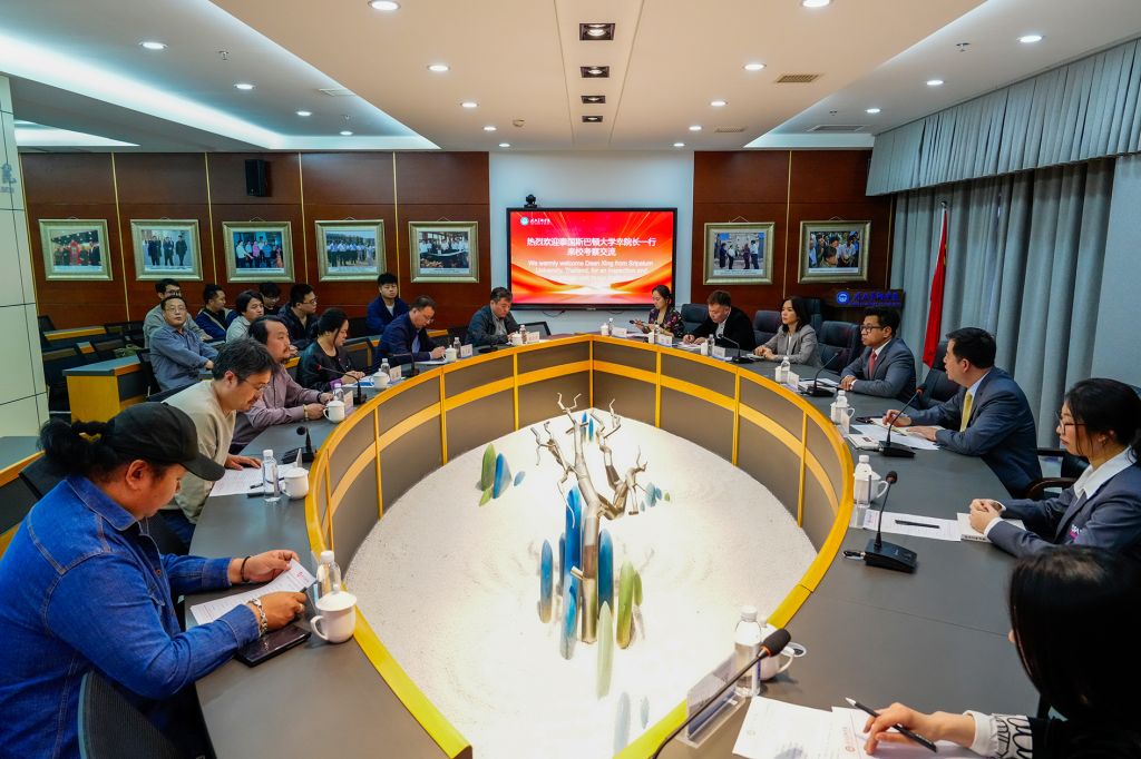 3月24日,泰国斯巴顿大学国际学院院长幸琳凯、数字媒体学院院长Kamon、外事处处长Mingkwan一行7人到beat365开展国际合作与交流活动。beat365教务处处长王杰,发展规划处处长张立阳,科研处处长张淼,动画数字艺术学院党委书记、院长姜仁峰,国际交流与合作中心副主任郝金龙等在1A综合楼318会议室接待来宾。会议由beat365雕塑院院长曾维林主持。