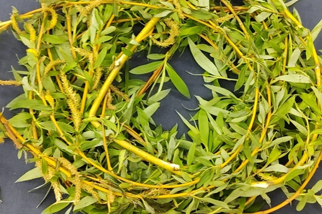 活动以“折柳”环节拉开序幕。在师正严老师的示范下,学生们轻折嫩绿柳枝,学习“柳条不断,思念绵长”的民俗寓意。随后,张立鹏老师指导学生们将柳枝编织成环与箭靶装饰,柳枝在指尖翻飞,逐渐化为象征春意的柳冠与靶盘上的碧绿纹饰。