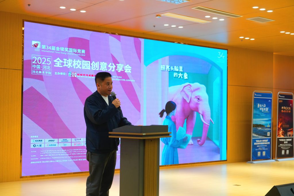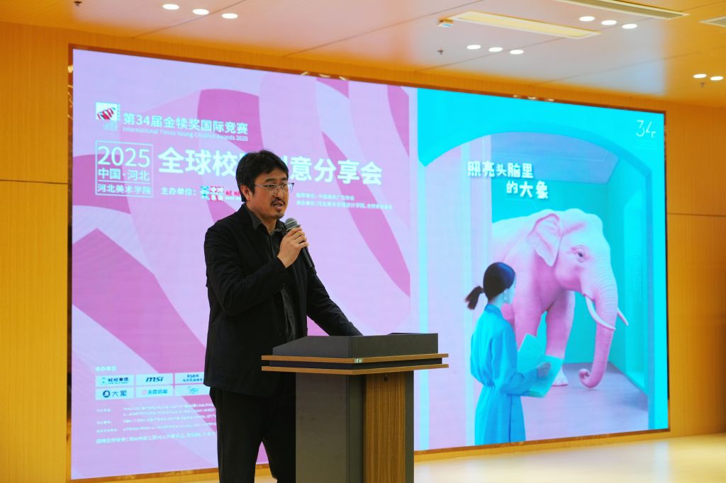 张厚炜全面介绍了赛事的发展历程、宗旨理念以及本届比赛的赛制规则和特色亮点。他强调,赛事的核心在于培育青年创意人才,并致力于构建一个跨界交流的平台,以推动创意产业的可持续发展。通过展示往届优秀作品所蕴含的社会责任与文化价值,赛事展现了对创新精神和人文关怀的双重追求。这不仅加深了在场师生对金犊奖的理解,也极大地激发了同学们的参与热情。