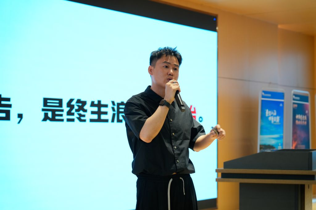 在创意分享环节,郭林凭借其丰富的实践经验,分享了前沿的创意理念和设计方法。他运用“旧元素,新组合”的创意挖掘方法,详细阐述了从命题选择到创意产生的整个过程。一系列专业且实用的分享内容,如同甘霖般滋润,让在场的师生受益匪浅。