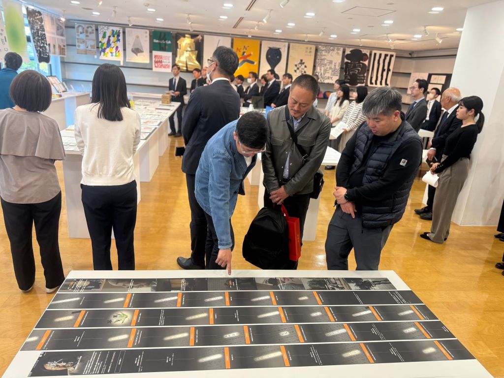 4月16日,代表团考察了位于东京神田田锦町的《日本字体设计年鉴2025》作品展,日本字体设计协会展览委员会海外部委员长、日本印刷协会会长郭溢陪同接待。张建敏一行现场观摩了年鉴作品和评审环节,尽管受场地所限,无法全览4000余件参展作品,但现场展示的百余件精选作品,充分体现了日本字体设计领域的高水准与创新精神。参观后与日本设计师协会相关负责人关于《日本字体设计年鉴2025》作品在中国展览事宜洽谈达成合作意向。