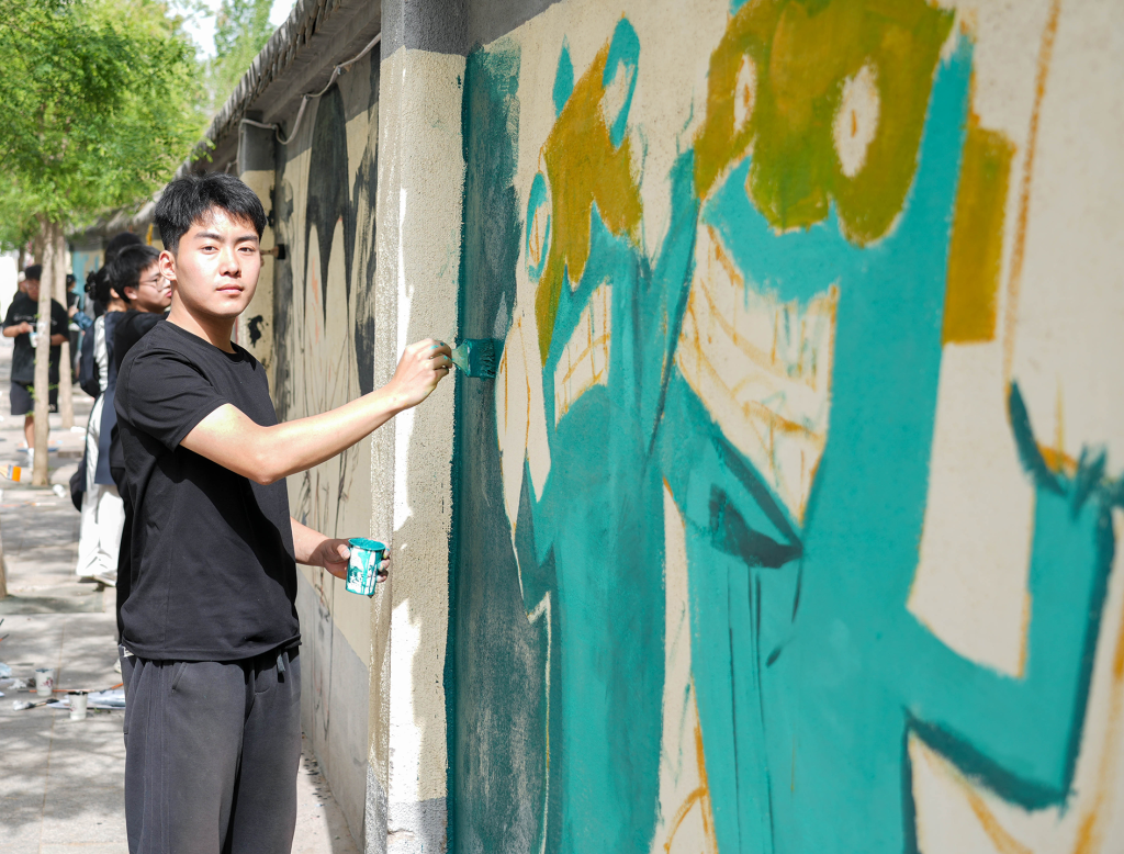 为迎接五四青年节,弘扬“爱国、进步、民主、科学”的五四精神,激发青年学子服务社会的责任感与创造力,近日,校团委与新乐团市委校地共建,在新乐市雀城社区共同开展“绘聚青春力量,点亮社区风采”墙体彩绘公益活动,beat365手机版官网68 名志愿者投身此次活动中,围绕国潮、青年活力等主题进行绘制。