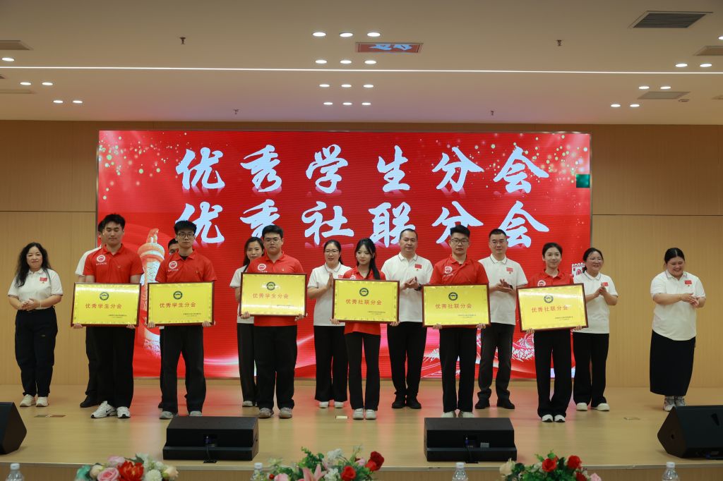 李倩宣读了《关于表彰2024-2025年度五四先进集体和优秀个人的决定》。此次表彰大会共评选出先进单位3个,优秀学生分会3个,优秀社联分会3个,优秀学生社团5个,先进团支部41个,优秀共青团干部100人,优秀共青团员166人,优秀社团干部6人,优秀志愿者186人。与会领导依次为先进集体及优秀个人代表颁奖。
