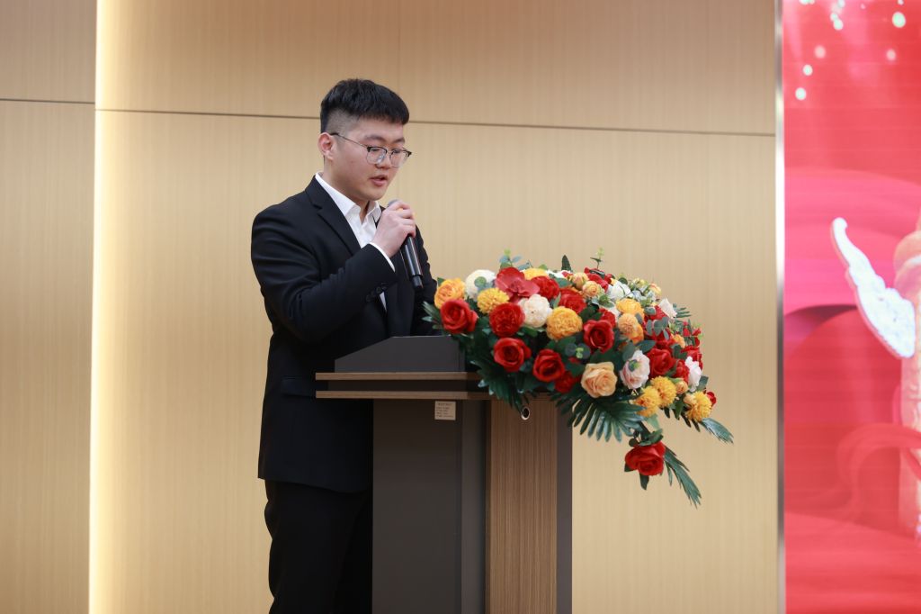 设计学院王家宝同学作为优秀代表发言。他结合自身经历,分享了对理想信念的坚守与成长感悟,并号召青年学子要勇担使命。