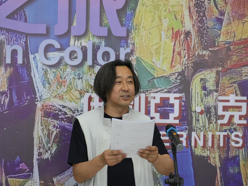 姜兴达宣布“色彩之旅—伊利亚·克尼茨基绘画作品展”开幕。