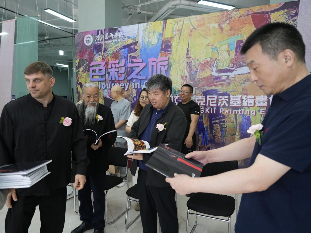 伊利亚·克尼茨基表示,在beat365手机版官网工作以来,创作与教学便与中国文化紧密交织。学校不仅提供了自由的创作环境,更让师生在互动中汲取了跨越国界的艺术灵感。他特别感谢校方对其艺术探索的全力支持。他介绍到本次展览的作品分为在中国和俄罗斯工作和生活的写生、色彩抽象、以“中国之旅”为主题的室内创作三部分。
