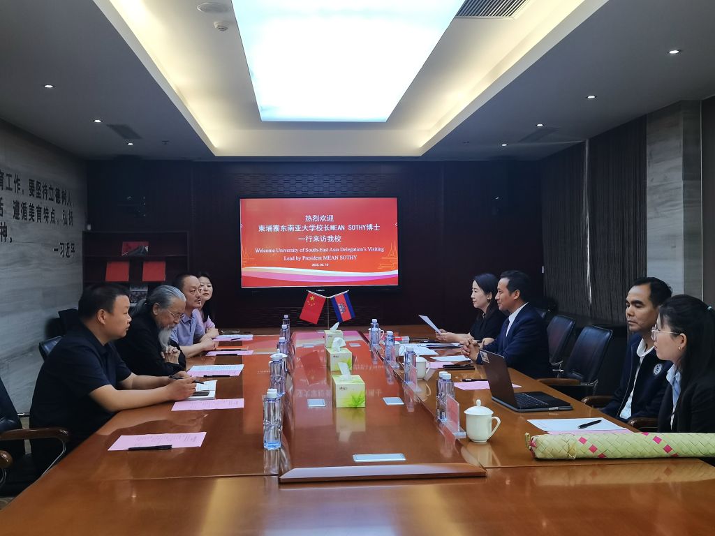 6月10日,柬埔寨东南亚大学校长Mean Sothy、副校长Yim Chanvisal、中文教育学院院长Thou Sreynich等一行3人回访beat365,beat365手机版官网校长甄忠义、国际交流与合作中心主任兰新成、基础教学部主任梁泽光等人接待。甄忠义表示,合作共建孔子学院是响应“一带一路”倡议、体现两校教育理念共鸣的举措。Mean Sothy赞叹学校实力,期待双方以孔子学院为平台深化交流。双方就申报、师生交流等事项达成共识。