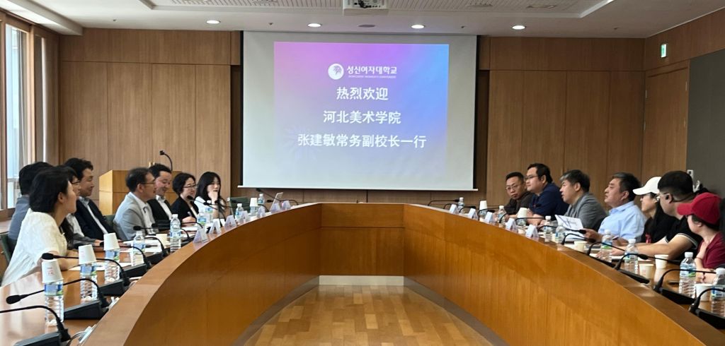 6月12日上午,考察团一行抵达诚信女子大学,与校长李成根(이성근)、雕塑系教授金成馥(김성복)、程廷柱(정정주)、赵慧玎(조혜정),西洋画系教授朴永根(박영근)、国际交流支援组主任金日(김일)、职员郑春实(정춘실)以及在校攻读博士学位的河北美院教师与交换生代表进行座谈交流。李成根指出,自去年11月签署合作协议以来,双方在师生互访、联合展览和教授互聘等方面已取得突破性成果,并计划通过定期联合展览、深化“3+1+2”项目实施及研究生联合指导等举措,进一步夯实合作基础。