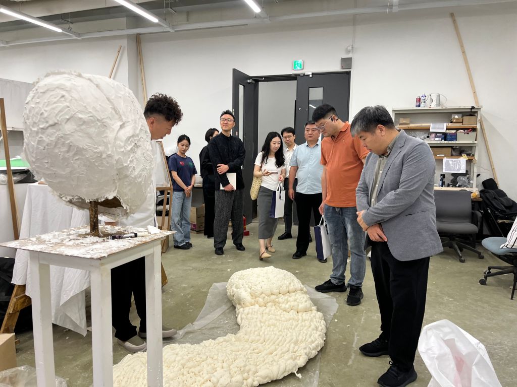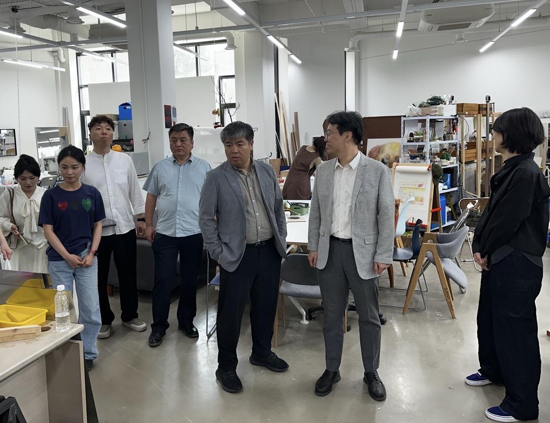 6月10日,考察团抵达国立首尔大学美术学院,与学院院长郑义哲(정의철)、副院长赵寅镐(조인호)、朴济成(박제성)、设计系主任闵福基(민복기)、雕塑系主任李钟健(이종건)及雕塑系教授等进行座谈。双方围绕专业教学体系、实验室布局、未来发展及联合展览规划等方面交流经验与设想,一致认为,两校在雕塑与公共艺术、工艺美术领域合作前景广阔,未来将持续深化务实合作,共同谱写协同发展新篇章。