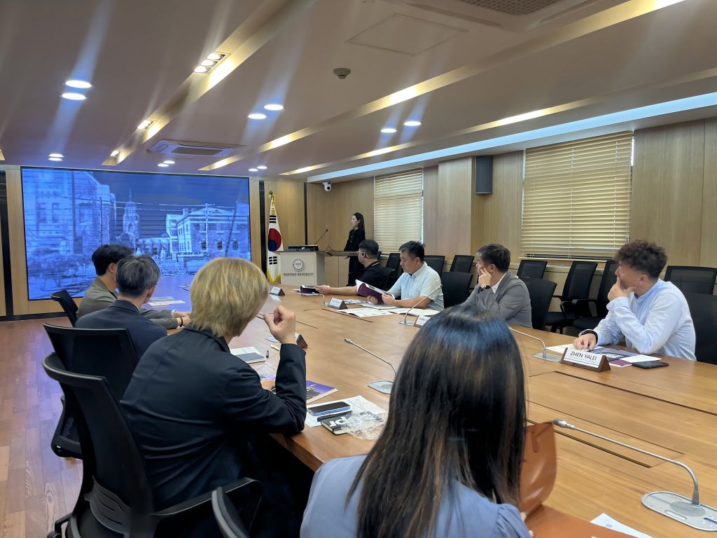 6月11日,考察团一行到访汉阳大学,与国际处处长金汉成(김한성)、国际交流组长郑载勋(정재훈)、国际交流专员卢尚旭(노상욱)、郑智雅(정지아)及国际交流职员马睿滢(마예영)举行座谈。双方围绕国际化办学实施路径、一般性学术交流及学生互访机制等议题展开深入讨论,并就搭建两校长期合作平台、联合项目开发与交换生等具体举措达成初步共识。