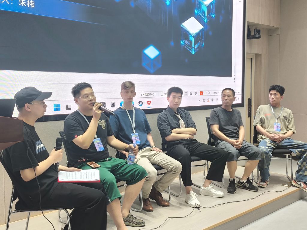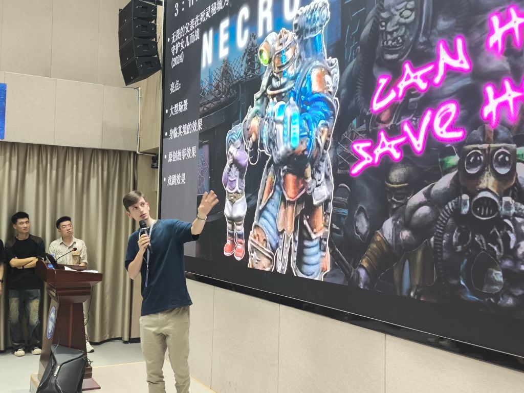 FLORIAN以游戏角色、场景潮玩系列为例,详细阐述了手办模型等衍生品在艺术创作中的关键阶段;朱祎分享了从兼职工作到主理工作室的创作心路,为学生带来实用指导;朱段旭辰将自身职业发展、参赛经历与原创产品制作经验,倾囊相授。现场师生踊跃提问,气氛热烈。