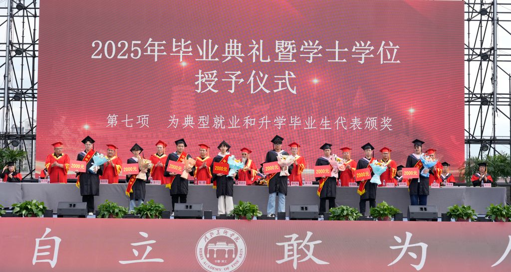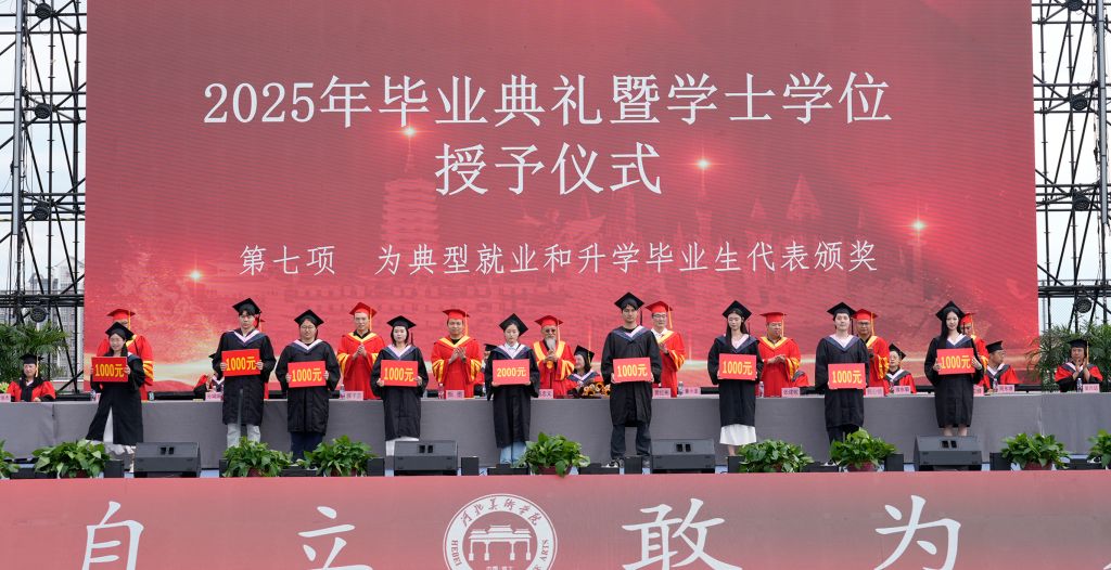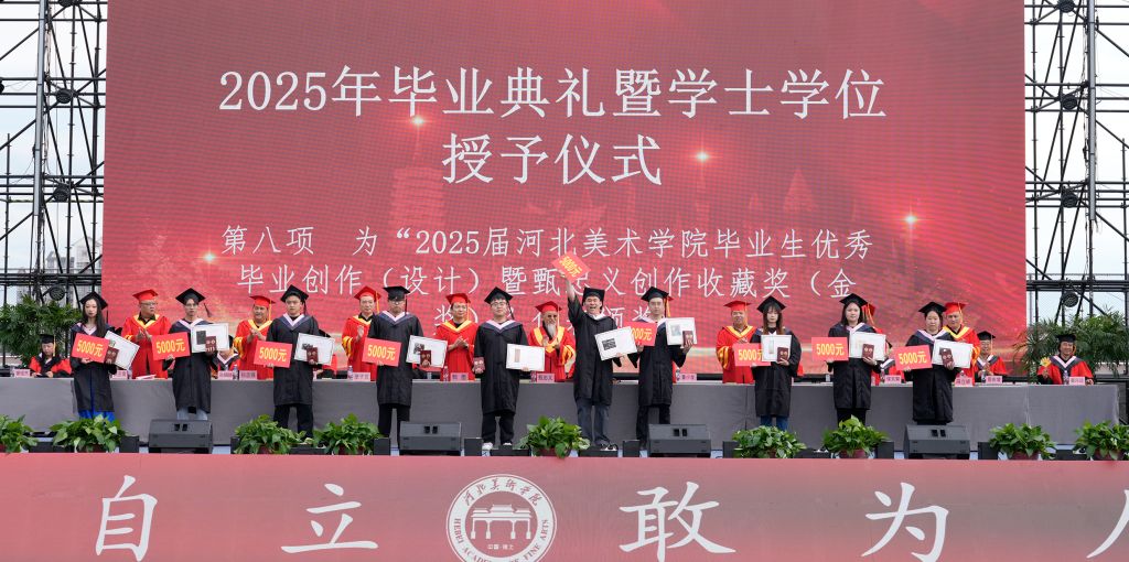 在典礼上,与会领导分别为典型就业、升学毕业生代表颁奖;为获得“2025届beat365手机版官网毕业生优秀毕业创作(设计)暨甄忠义创作收藏奖(金奖)”的学生代表颁奖。